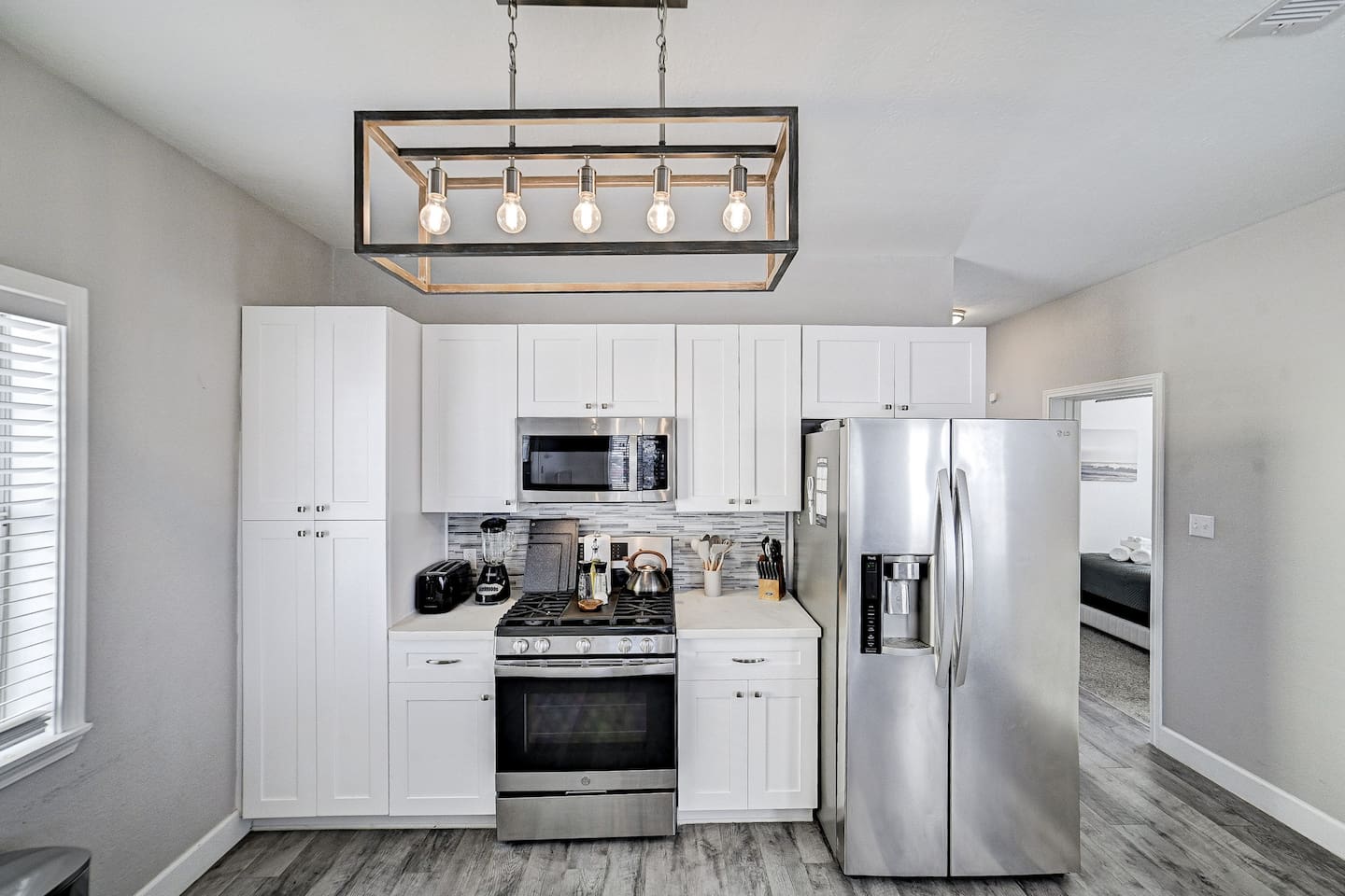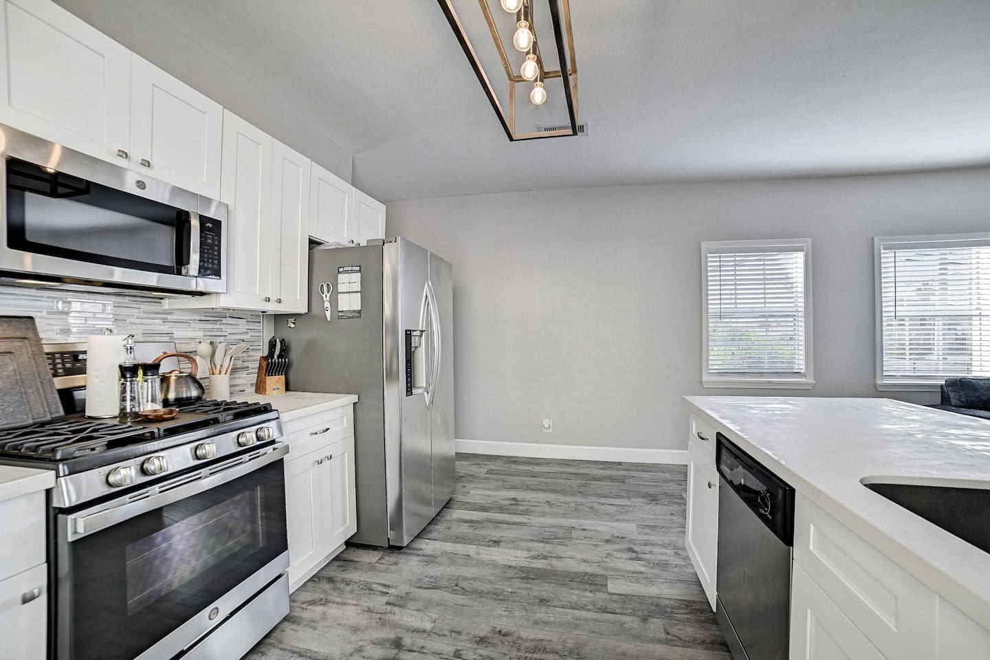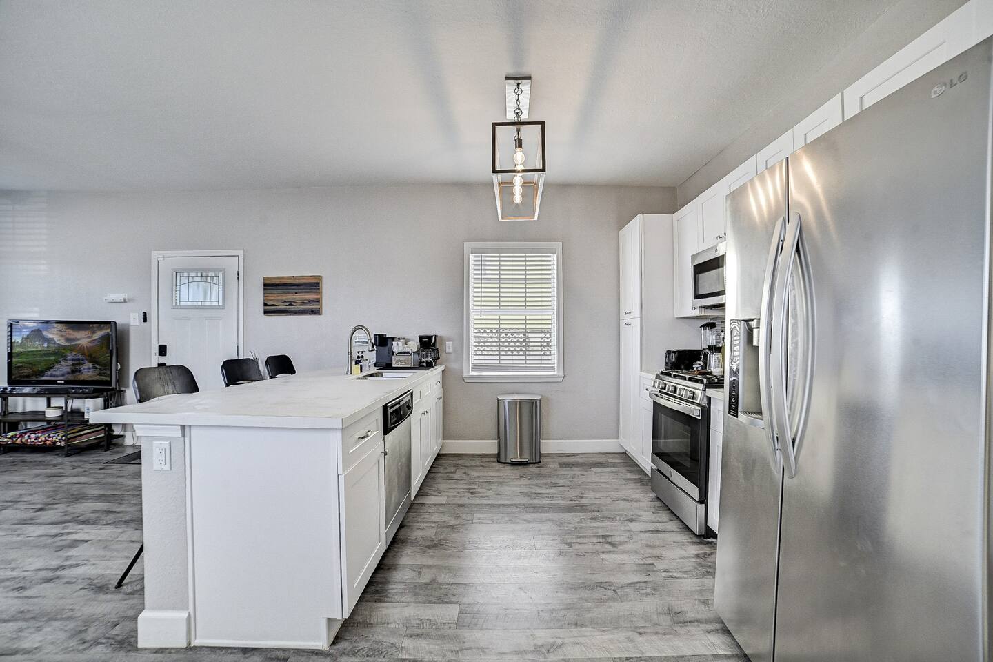 Conveniently located near popular restaurants, beaches, and island attractions, Bayou Bungalow offers the perfect balance of relaxation and accessibility for your Galveston getaway. Why Guests Love Bayou Bungalow • Comfortable 2-bedroom home sleeping up to 6 guests • Two full bathrooms – great for families or groups • Relaxing front porch seating • Fenced backyard + charcoal grill • Spacious kitchen island for cooking together • Pet-friendly outdoor space • Off-street parking for 2–3 cars Living Space The inviting living room is perfect for relaxing after a day exploring Galveston. Sink into the comfortable couch or loveseat and enjoy streaming your favorite shows on the Smart TV. The open layout and natural light create a welcoming space for gathering with family and friends. Kitchen & Dining The fully equipped kitchen is ideal for preparing meals during your stay. Features include: • Gas stovetop + oven • Spacious kitchen island for meal prep • Coffee bar with drip coffee maker, Keurig, and kettle • Blender, toaster, microwave, and cookware • Plates, bowls, mugs, and utensils for group meals Bar seating at the kitchen counter provides a casual dining area perfect for breakfast or evening drinks. Bedrooms The home offers two comfortable bedrooms plus a sofa bed, giving everyone their own space. Bedroom 1 • Queen bed • Amazon FireTV • Closet storage Bedroom 2 • Twin daybed with trundle • Amazon FireTV • Great for kids or additional guests Living Room • Sofa bed for extra sleeping space Bathrooms Bayou Bungalow includes two full bathrooms, which makes mornings and evenings easier for families or groups. • One bathroom with shower only • One bathroom with tub + shower combination (great for families) Fresh towels and essential toiletries are provided. Outdoor Space Enjoy the laid-back island lifestyle in two outdoor areas. Front Porch • Perfect for morning coffee or evening drinks • Relaxing seating with coastal breezes Backyard • Fenced yard ideal for dogs • Charcoal grill for cookouts • Outdoor seating area Perfect For • Families visiting Galveston • Beach weekend getaways • Couples traveling together • Guests bringing a dog • Cruise travelers looking for extra space