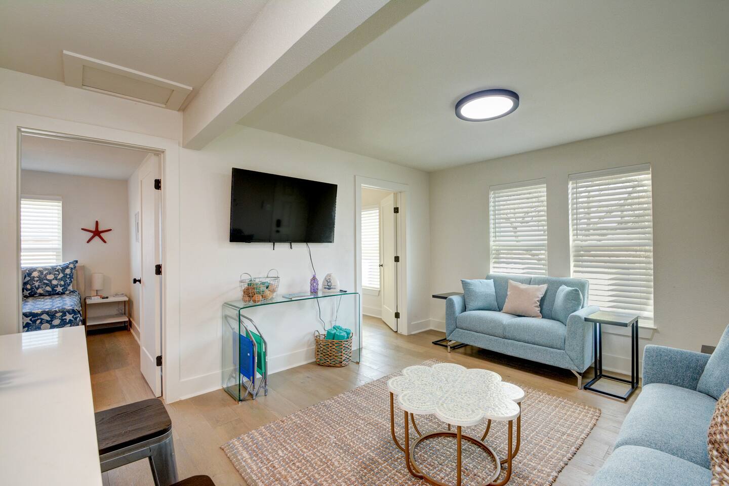 Why Guests Love Hip-Nautic • Two king bedrooms – rare for Galveston rentals • Pet-friendly home with outdoor space • Private backyard patio with grill • Bright coastal décor and comfortable living space • Perfect for couples, friends, or small families • Centrally located for exploring Galveston Living Space The comfortable living room provides a relaxing space to unwind after a day exploring the island. Kick back on the sofa, stream your favorite shows, or gather with friends to plan your next beach adventure. The home’s bright coastal style and open layout create a welcoming place to relax and recharge. Kitchen The kitchen is fully equipped with everything you need to prepare meals, morning coffee, or quick snacks before heading out for a day on the island. Whether you’re cooking dinner or grilling outside, the space is designed for easy vacation living. Bedrooms Both bedrooms feature comfortable king beds, giving everyone plenty of space to stretch out and relax after a fun day in Galveston. Bedroom 1 • King bed • Comfortable linens • Cozy, quiet retreat Bedroom 2 • King bed • Perfect for couples or friends traveling together Outdoor Space Step outside to the private patio and backyard area, perfect for enjoying the coastal breeze. • Outdoor seating • Charcoal grill for cookouts • Relaxed island atmosphere It’s the ideal spot to unwind after a day at the beach. Perfect For • Couples traveling together • Small families • Weekend beach getaways • Pet owners visiting Galveston • Extended stays on the island