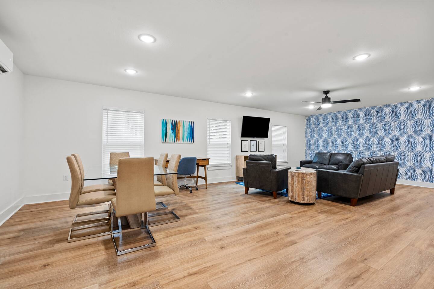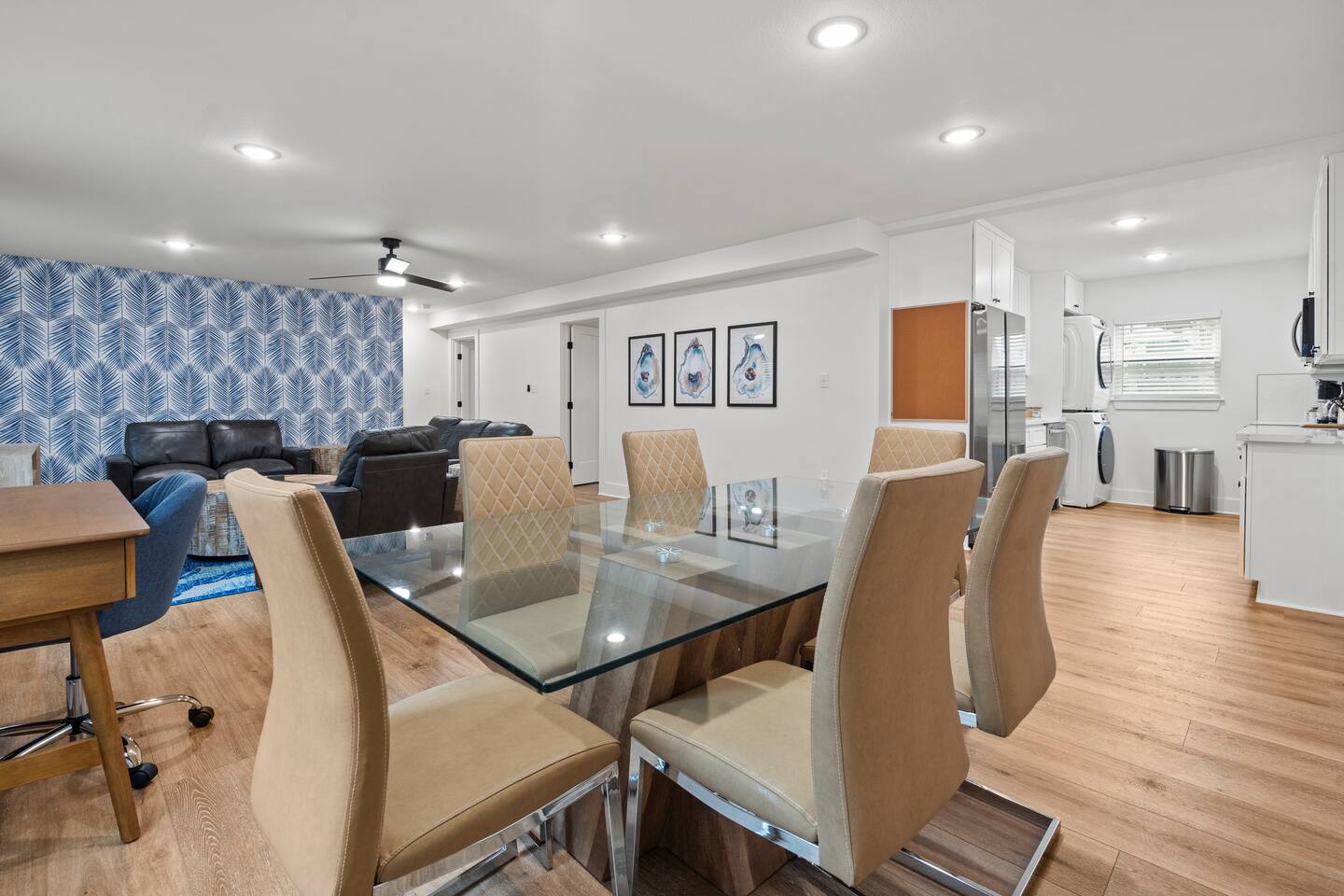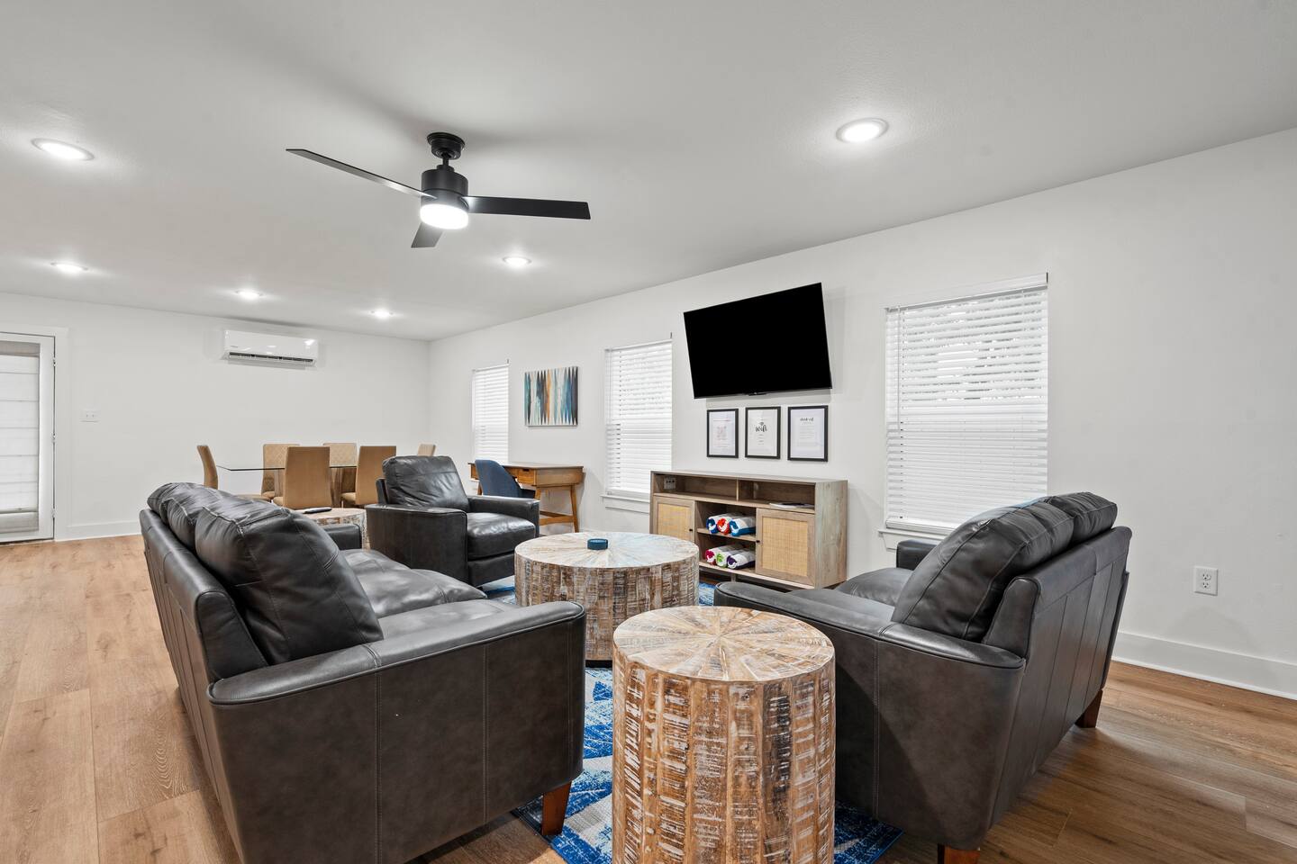 BEDROOMS Island Gems - Sapphire generously offers 3 king beds. There are 3 bedrooms total, each with a bed of its own for your privacy. Nestle yourself into a spacious bed and drift off to a restorative night’s sleep! Each bedroom includes a SmartTV and a dresser. BATHROOM There are 2 bathrooms with a shower + tub combination, which is particularly convenient for families with small children. Enjoy steady hot water and great water pressure. Bath towels, shampoo, conditioner, body wash, hand soap, and body lotion are provided. KITCHEN The kitchen is well-stocked and the perfect space for groups that like to cook together. Fully equipped with glasses, mugs, plates, bowls & silverware for 6. Coffee/Tea Bar includes drip coffee maker, Keurig, and electric kettle. Blender, toaster, and microwave included. Electric stovetop range + oven. Pots/pans, baking sheet, oil, salt & pepper. DINING ROOM The dining table with seating for 6 creates an intimate setting for quality family time, meals and games. LIVING ROOM Perfect for low-key nights in, our 55“ SmartTV will entertain your family as they relax and unwind on the heavenly couch, loveseat, and sofa chair. Log in to your accounts to enjoy Netflix, HBO, Prime, Hulu, Disney+ and more. WORKSPACE For moments when you need to check emails or take care of business, our dedicated workspace is the answer. We provide a desk for your comfort, located between the dining and living rooms. Strong WiFi is available throughout the house. OUTSIDE The outdoor patio area is fitted with a dining table and seating to enjoy the Gulf breeze on a cool evening.