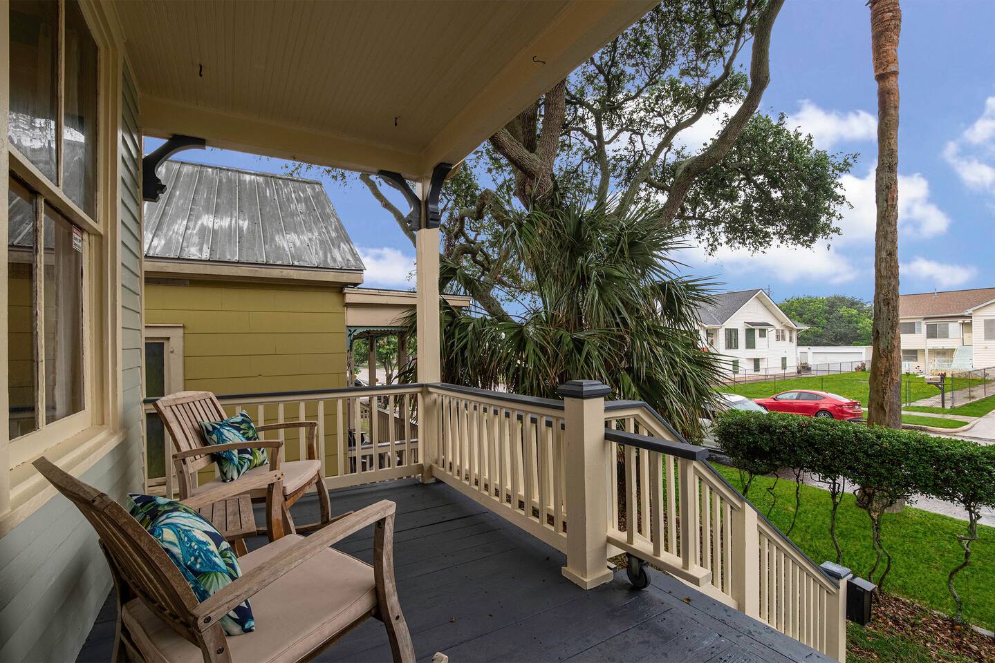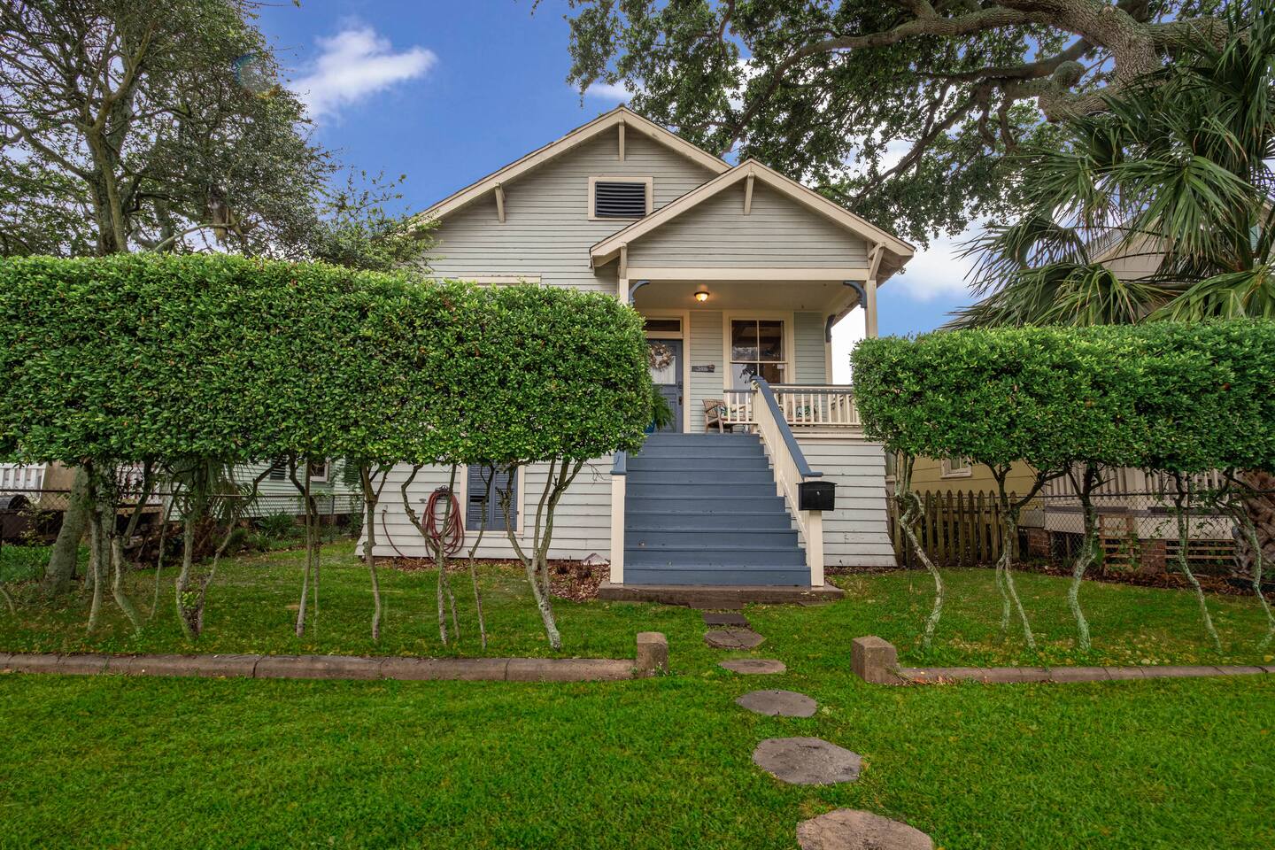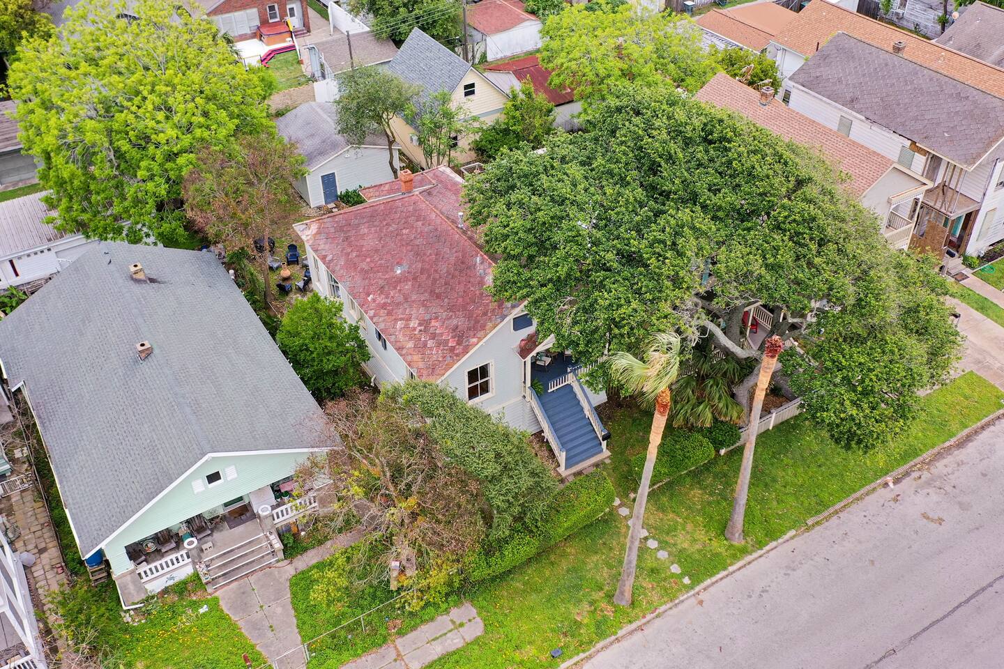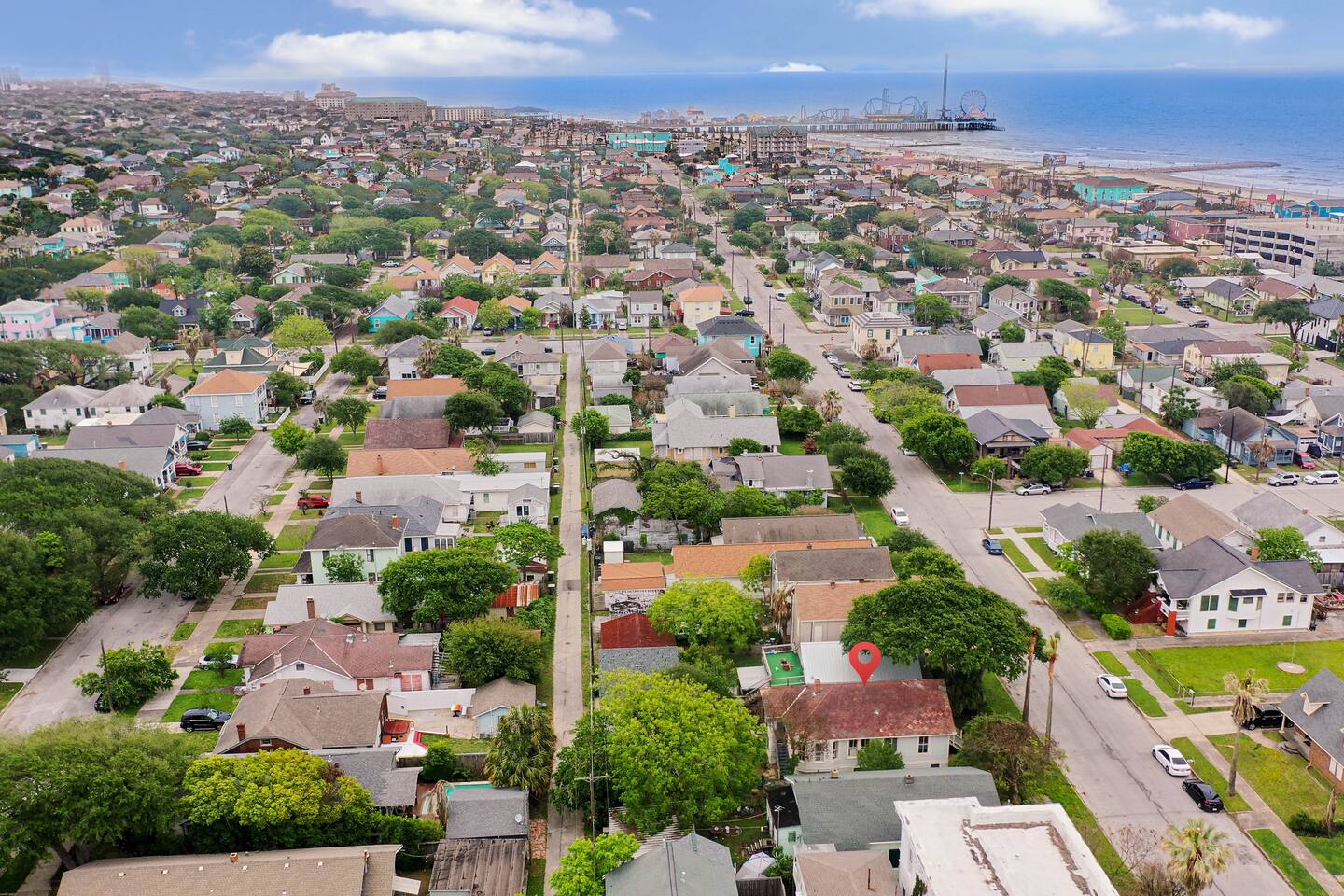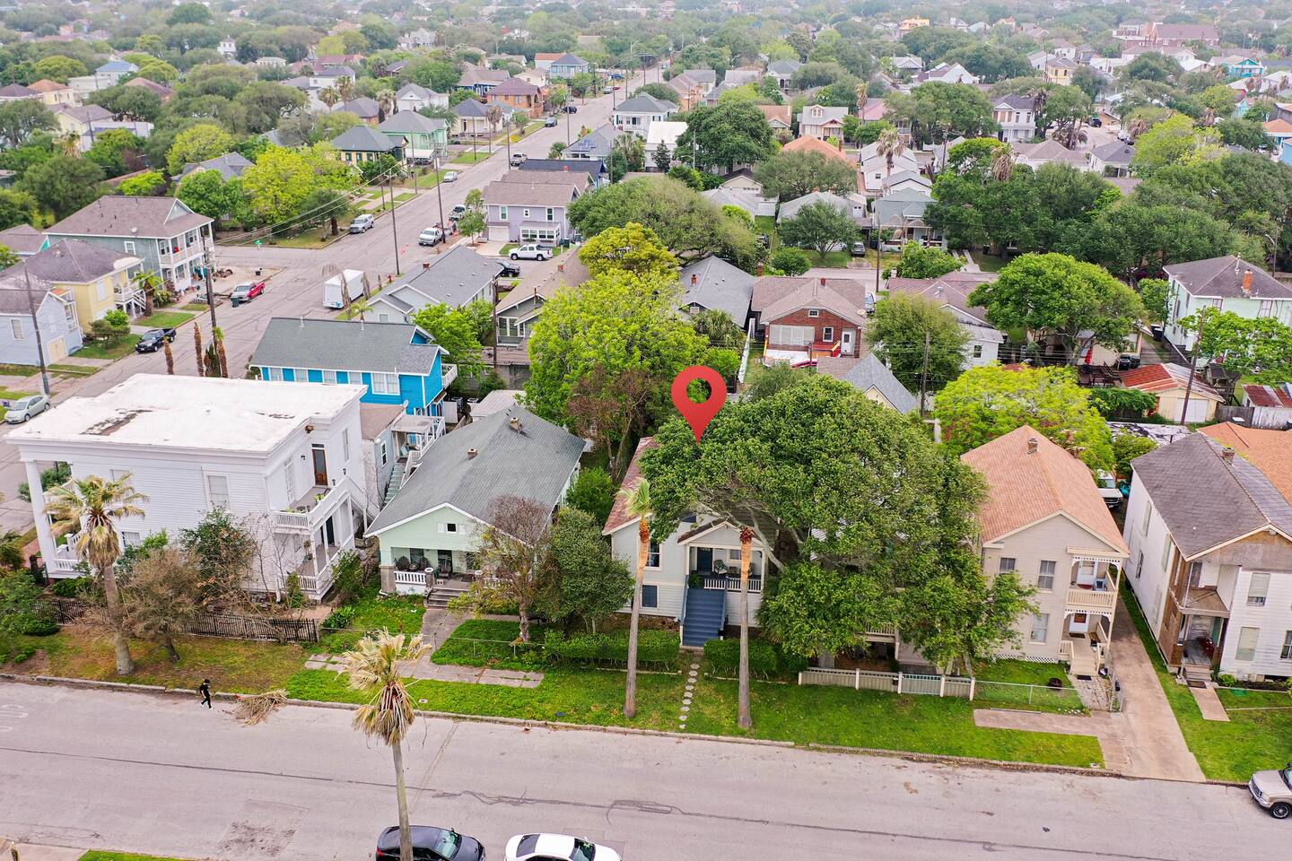 Why Guests Love Island Pride Bungalow • Walk to the beach & Seawall in about 6 minutes • Two king beds – rare for Galveston rentals • Dog-friendly fenced backyard • Relaxing front porch seating • Fast WiFi for streaming or remote work • Hosted by local Galveston residents Living Space The home blends historic Galveston charm with modern comforts. Relax in the cozy living room with a large Roku SmartTV, comfortable seating, and plenty of space to unwind after a day at the beach. The fully equipped kitchen makes it easy to prepare meals, morning coffee, or snacks before heading out to explore the island. Bedrooms Bedroom 1 – King Suite • King bed • Roku SmartTV • Comfortable mattress and soft linens Bedroom 2 – King Bedroom • King bed • SmartTV • Quiet and relaxing space Bedroom 3 – Queen Bedroom • Queen bed • Perfect for kids or additional guests Outdoor Space Enjoy classic island outdoor living. • Front porch seating for morning coffee or evening drinks • Fenced backyard great for dogs • Charcoal grill for cookouts • Relaxing coastal breezes Perfect For • Families visiting Galveston • Beach weekends with friends • Couples traveling together • Guests bringing a dog • Remote workers needing reliable WiFi