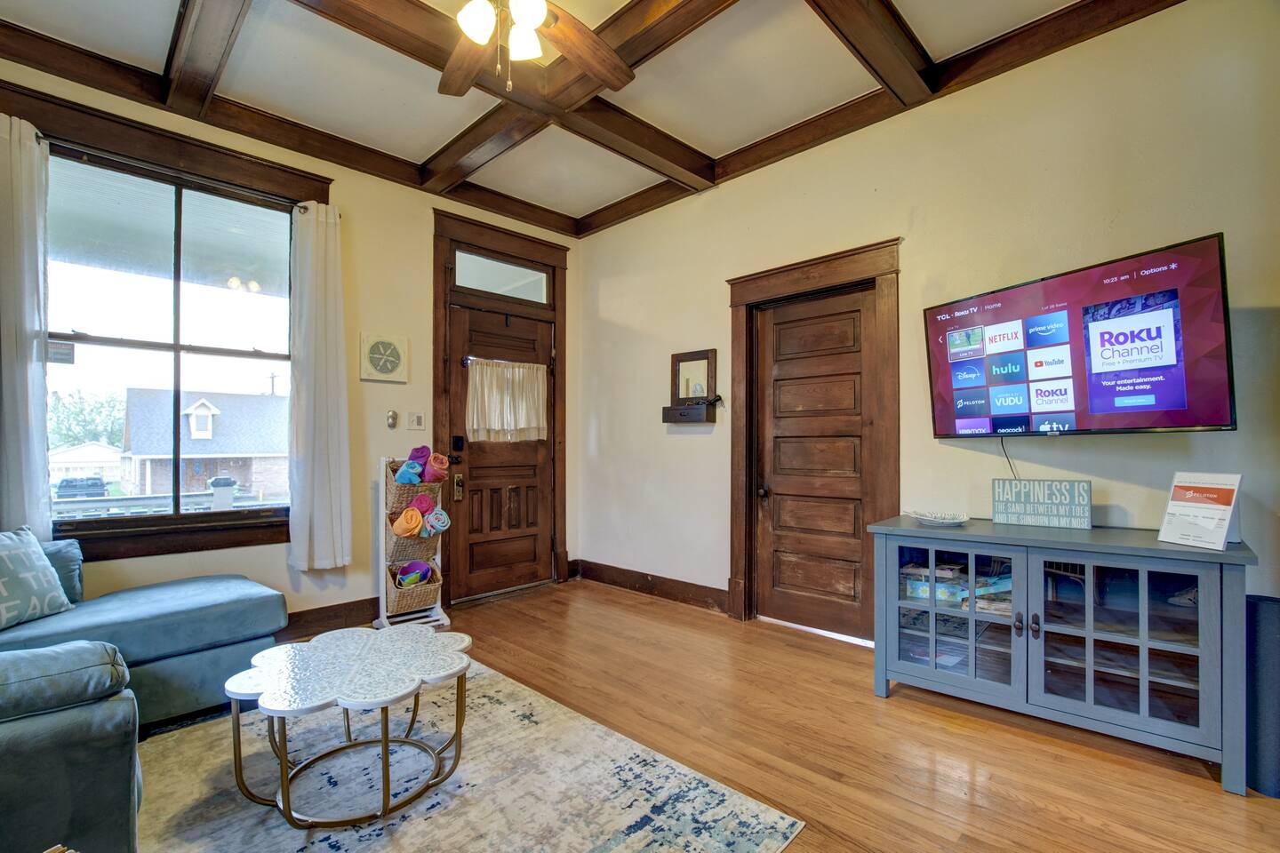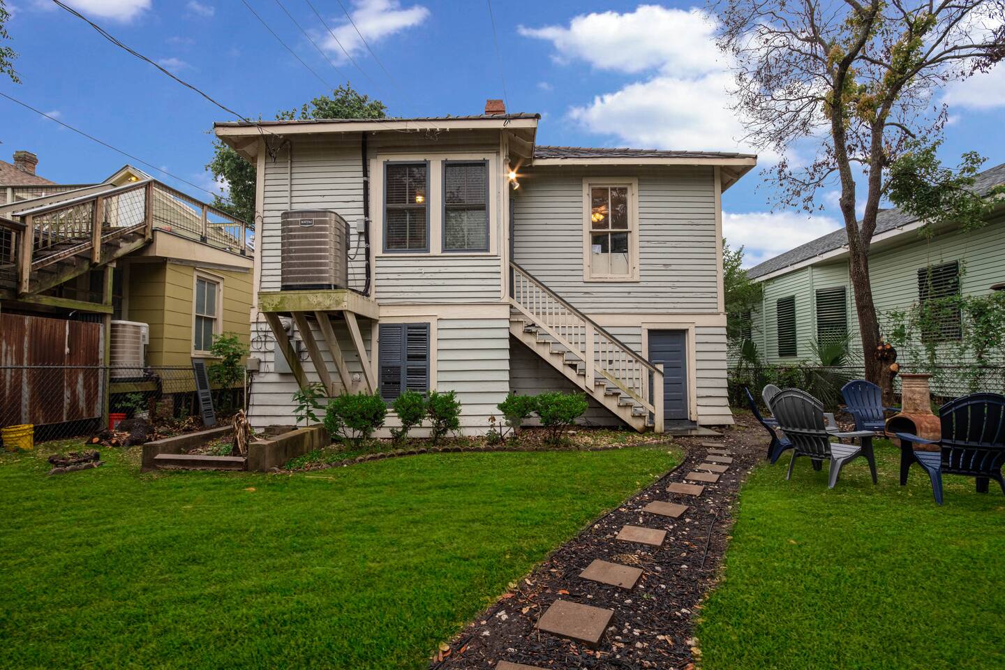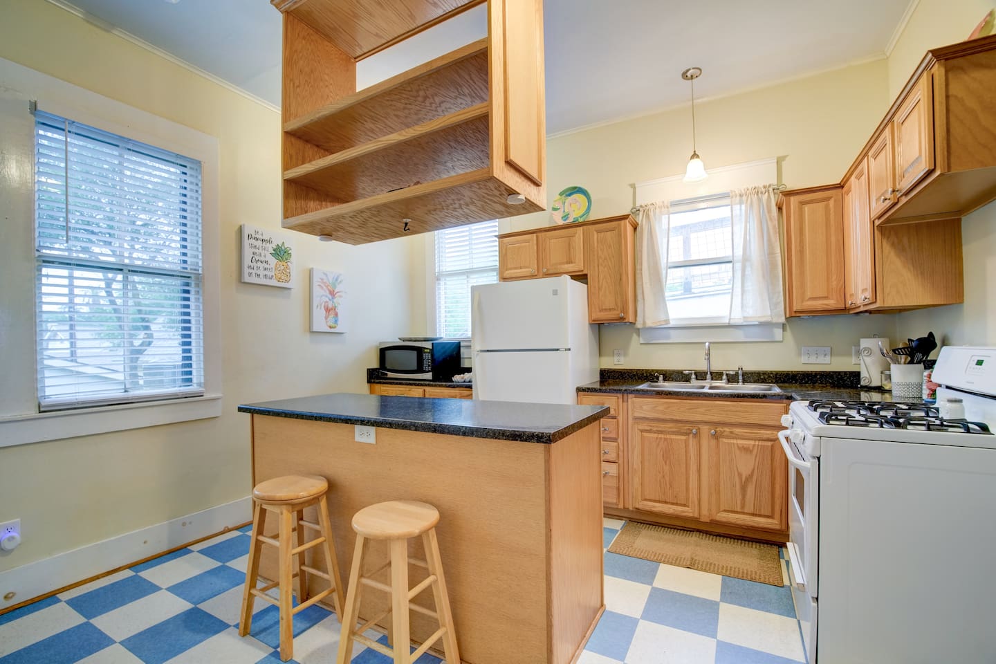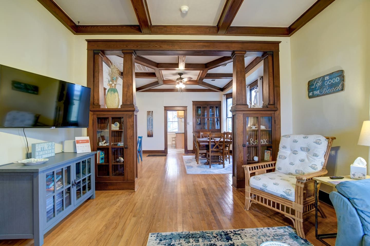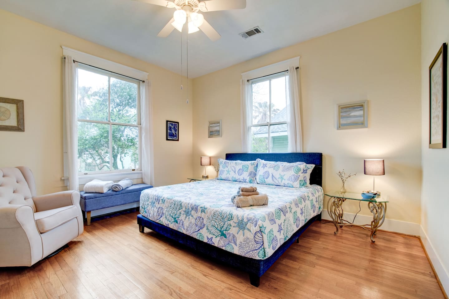 Why Guests Love Island Pride Bungalow • Walk to the beach & Seawall in about 6 minutes • Two king beds – rare for Galveston rentals • Dog-friendly fenced backyard • Relaxing front porch seating • Fast WiFi for streaming or remote work • Hosted by local Galveston residents Living Space The home blends historic Galveston charm with modern comforts. Relax in the cozy living room with a large Roku SmartTV, comfortable seating, and plenty of space to unwind after a day at the beach. The fully equipped kitchen makes it easy to prepare meals, morning coffee, or snacks before heading out to explore the island. Bedrooms Bedroom 1 – King Suite • King bed • Roku SmartTV • Comfortable mattress and soft linens Bedroom 2 – King Bedroom • King bed • SmartTV • Quiet and relaxing space Bedroom 3 – Queen Bedroom • Queen bed • Perfect for kids or additional guests Outdoor Space Enjoy classic island outdoor living. • Front porch seating for morning coffee or evening drinks • Fenced backyard great for dogs • Charcoal grill for cookouts • Relaxing coastal breezes Perfect For • Families visiting Galveston • Beach weekends with friends • Couples traveling together • Guests bringing a dog • Remote workers needing reliable WiFi