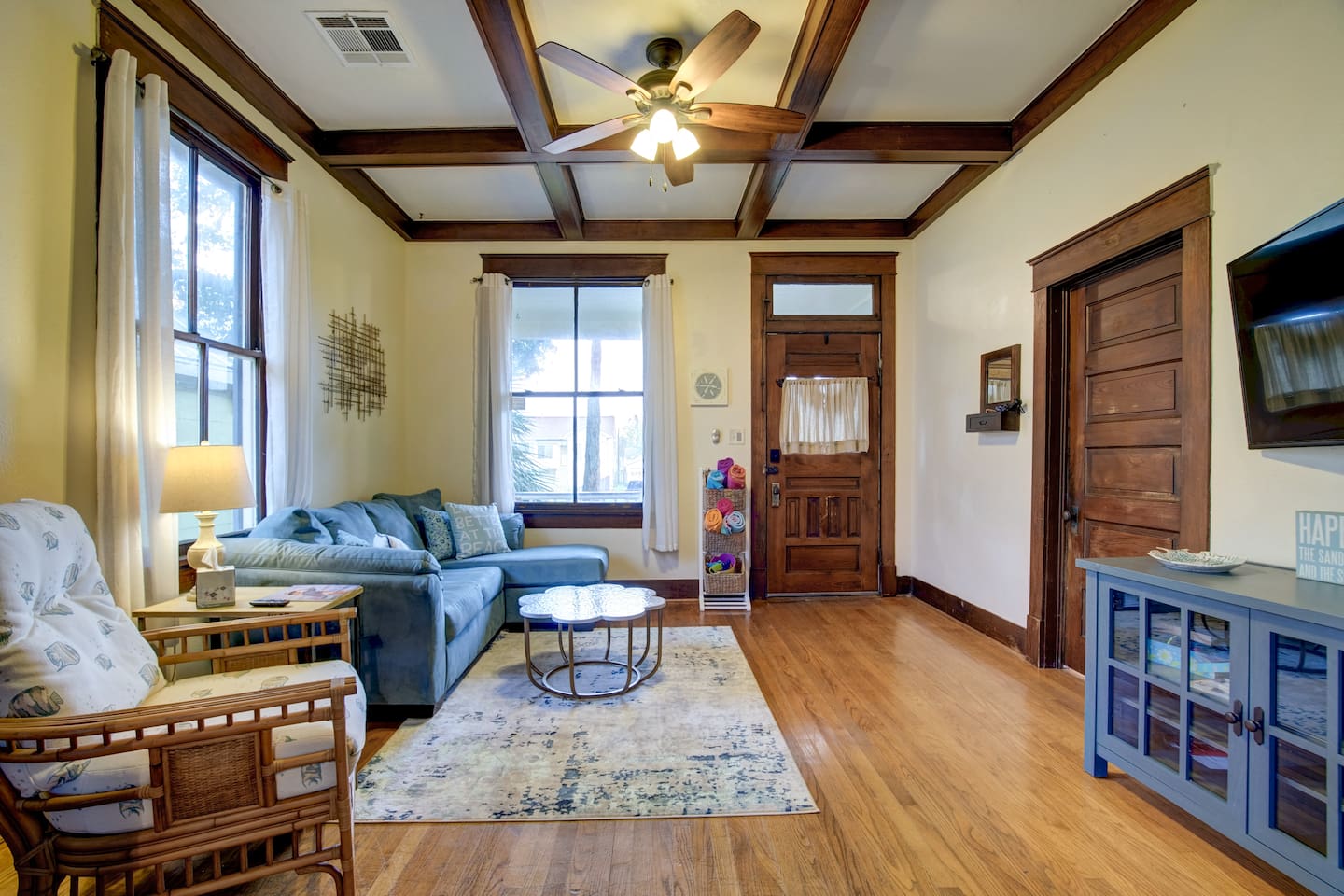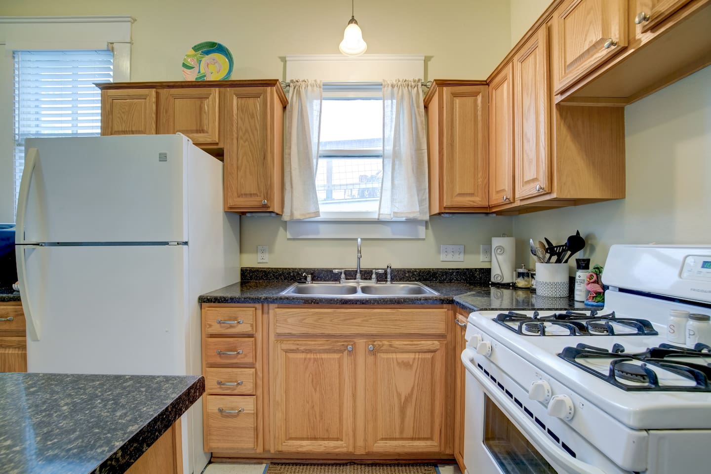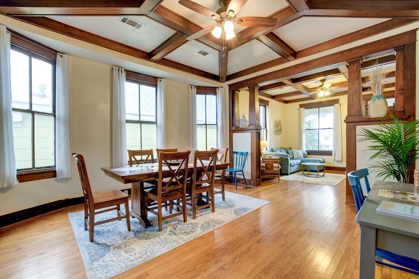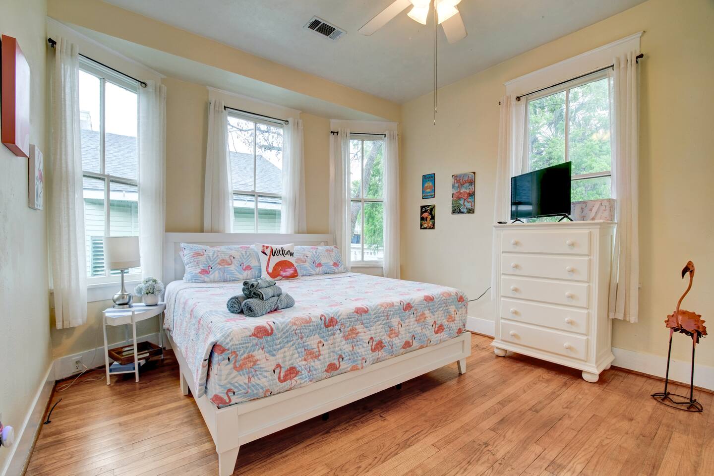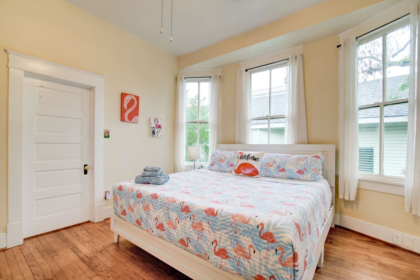 Why Guests Love Island Pride Bungalow • Walk to the beach & Seawall in about 6 minutes • Two king beds – rare for Galveston rentals • Dog-friendly fenced backyard • Relaxing front porch seating • Fast WiFi for streaming or remote work • Hosted by local Galveston residents Living Space The home blends historic Galveston charm with modern comforts. Relax in the cozy living room with a large Roku SmartTV, comfortable seating, and plenty of space to unwind after a day at the beach. The fully equipped kitchen makes it easy to prepare meals, morning coffee, or snacks before heading out to explore the island. Bedrooms Bedroom 1 – King Suite • King bed • Roku SmartTV • Comfortable mattress and soft linens Bedroom 2 – King Bedroom • King bed • SmartTV • Quiet and relaxing space Bedroom 3 – Queen Bedroom • Queen bed • Perfect for kids or additional guests Outdoor Space Enjoy classic island outdoor living. • Front porch seating for morning coffee or evening drinks • Fenced backyard great for dogs • Charcoal grill for cookouts • Relaxing coastal breezes Perfect For • Families visiting Galveston • Beach weekends with friends • Couples traveling together • Guests bringing a dog • Remote workers needing reliable WiFi
