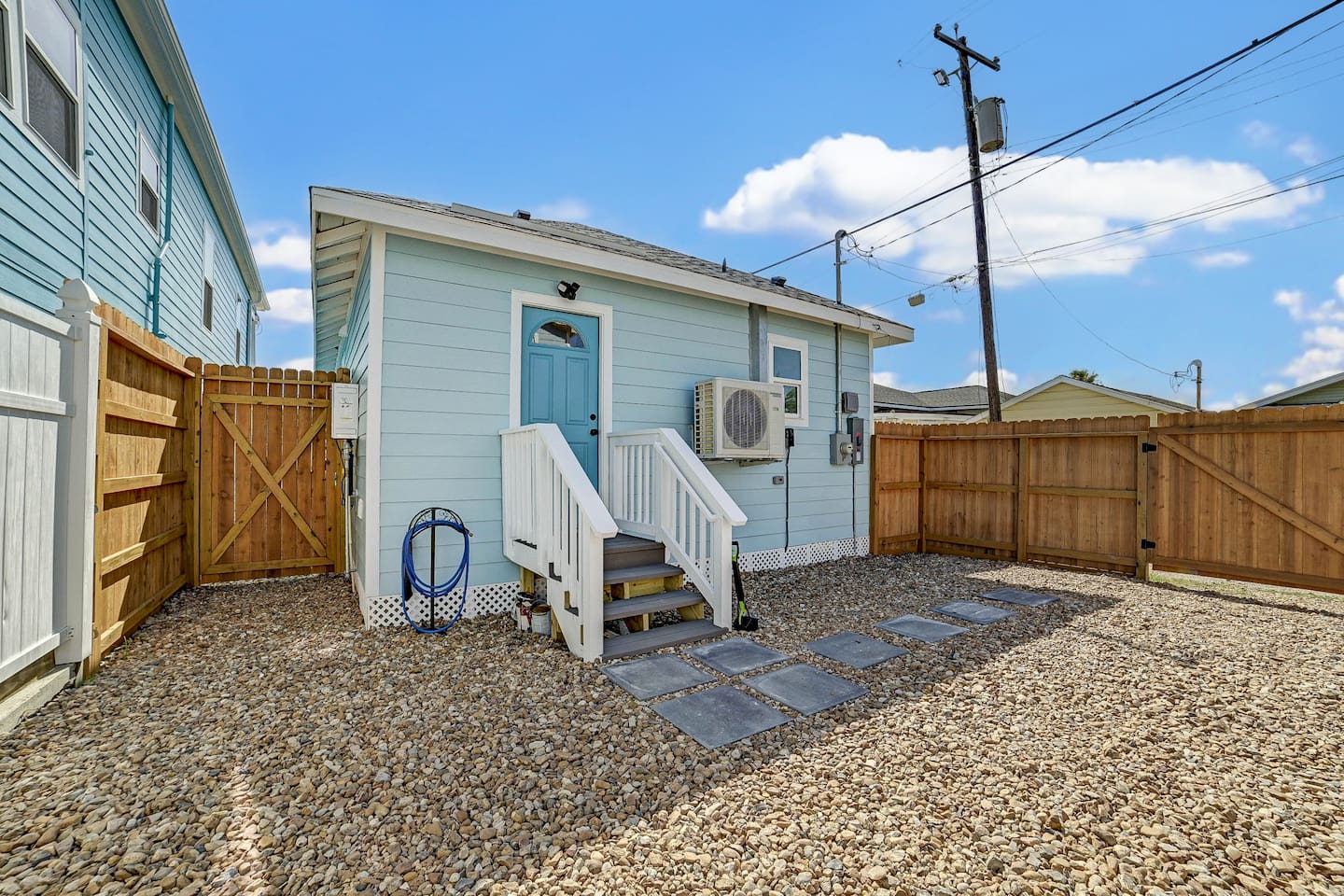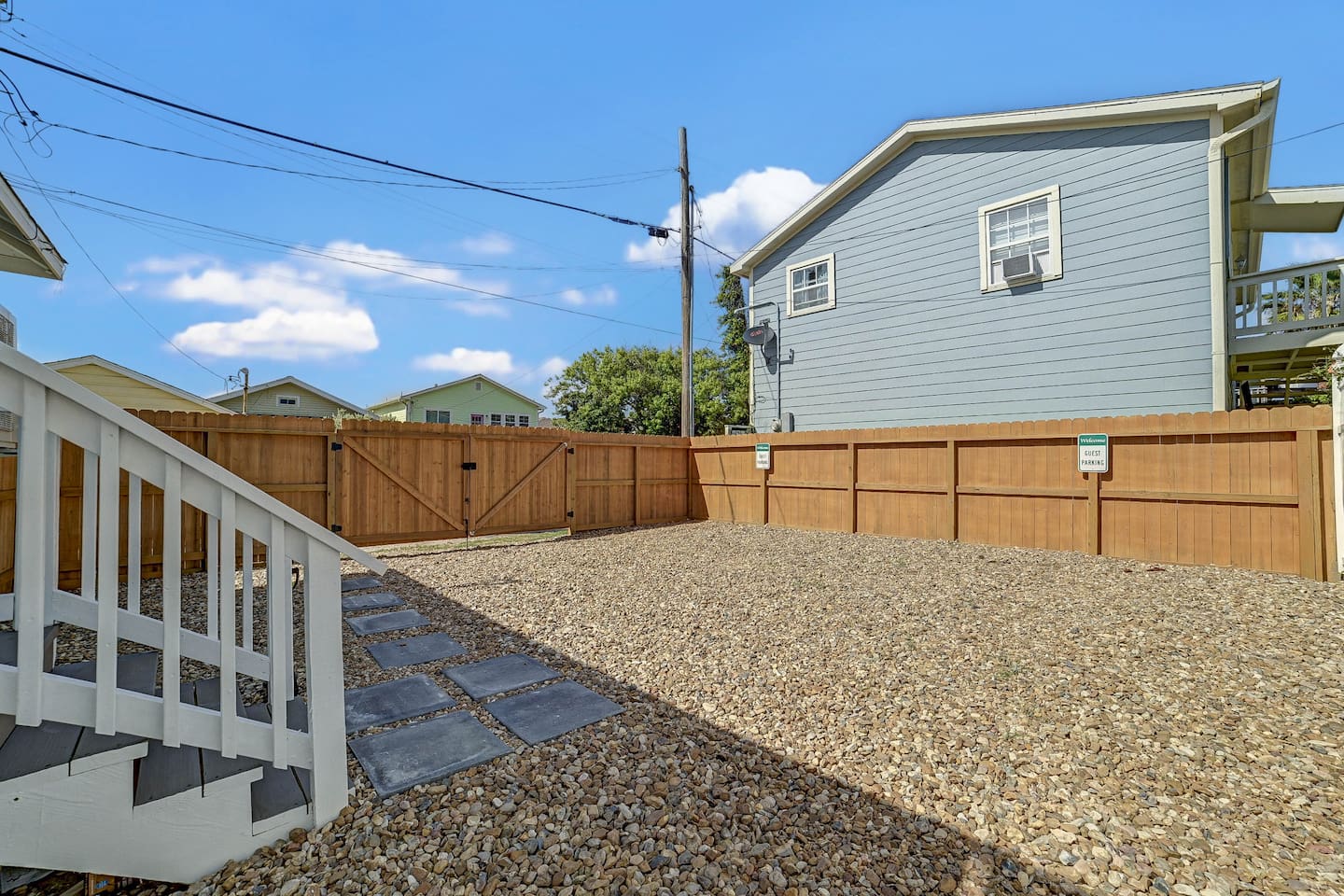 Private parking in the rear of the property. Street parking available in front of house (guest passes provided). Several local vendors available for bike or golf cart rental.