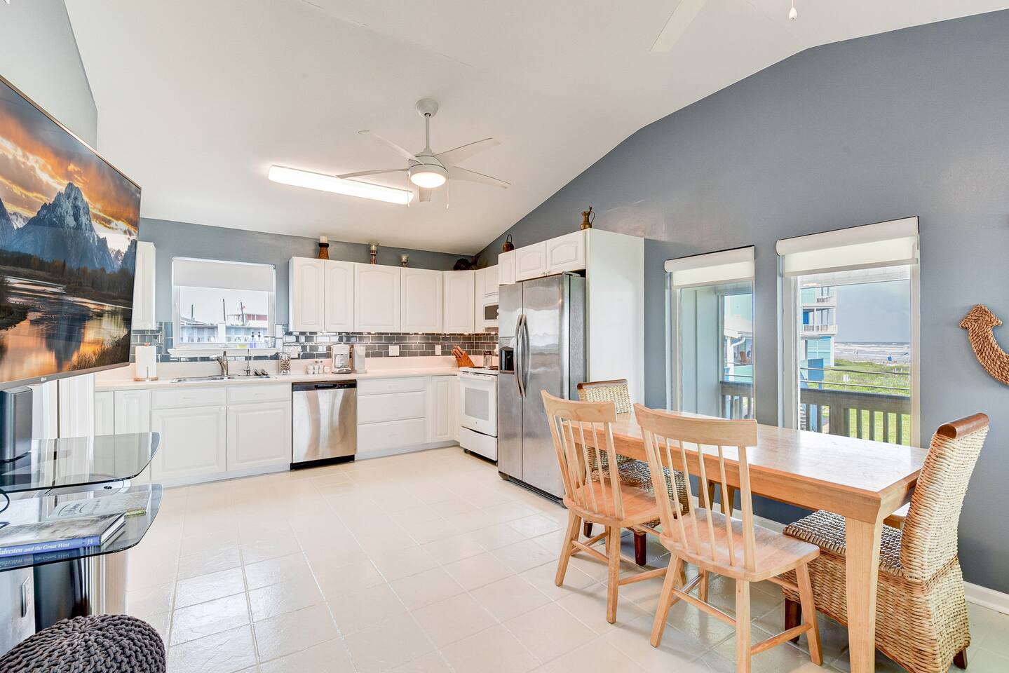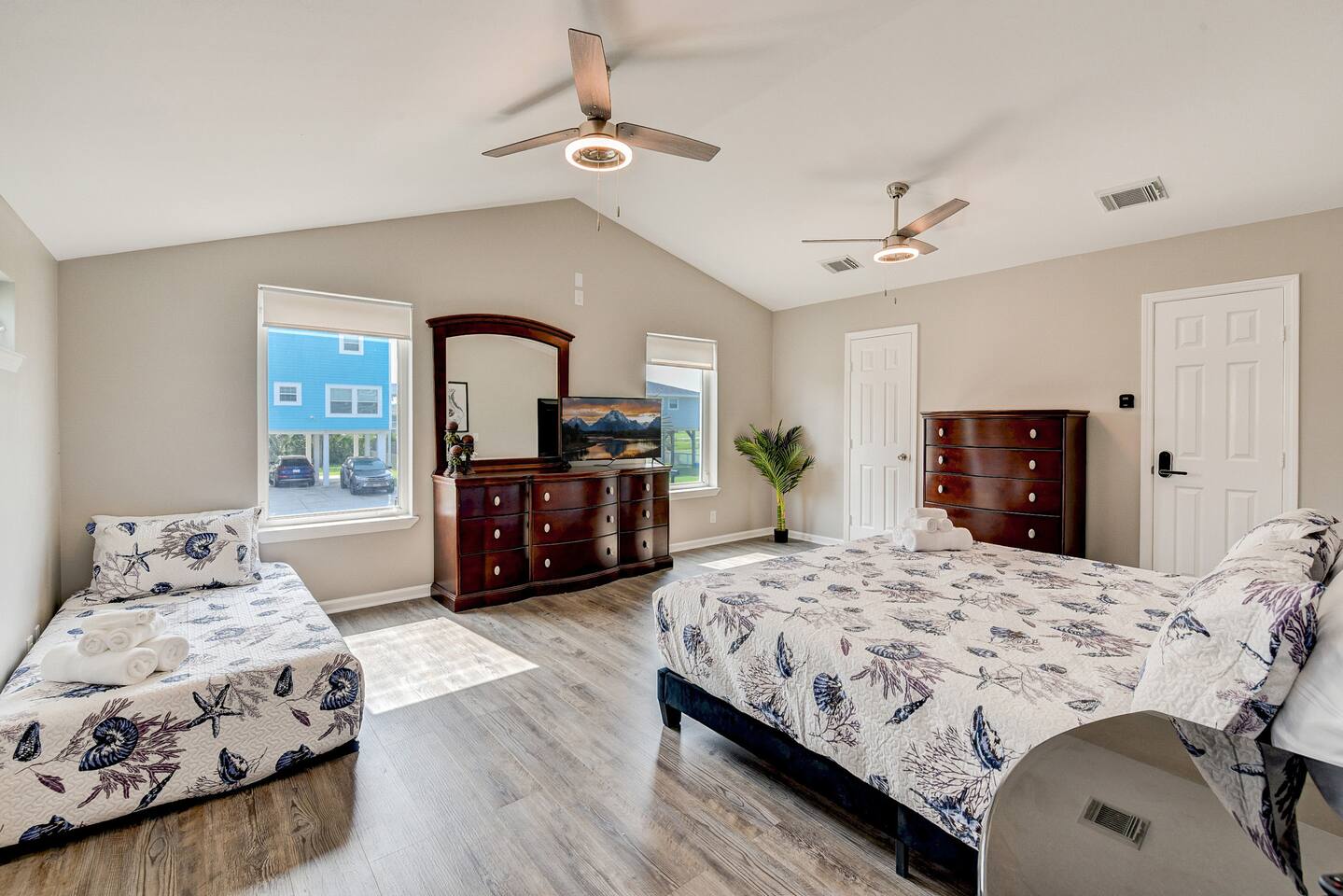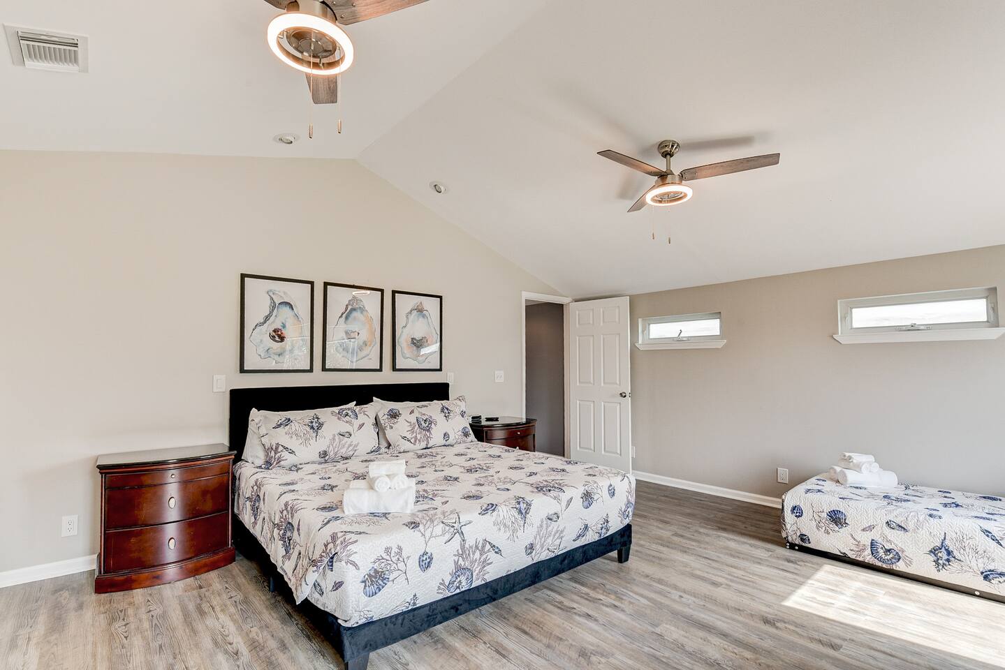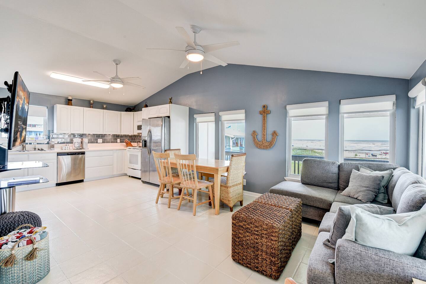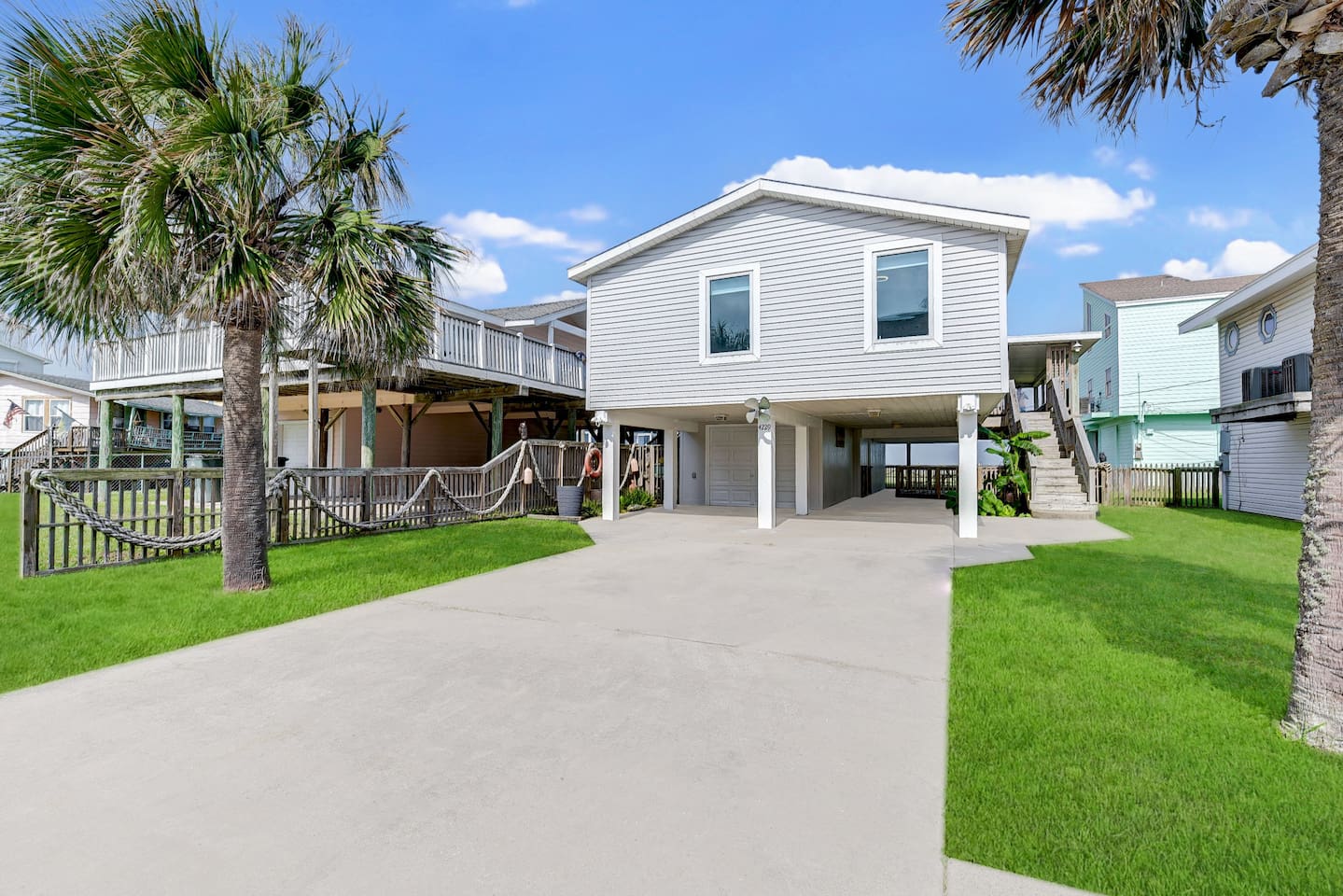 Propeller Clubhouse – Beachfront Views & Island Relaxation Welcome to Propeller Clubhouse, a spacious beachfront home on Galveston’s Palm Beach where the sand and surf are just steps away. With panoramic Gulf views, two king bedrooms, and a large deck perfect for sunrise coffee or sunset drinks, this home is designed for the ultimate island getaway.