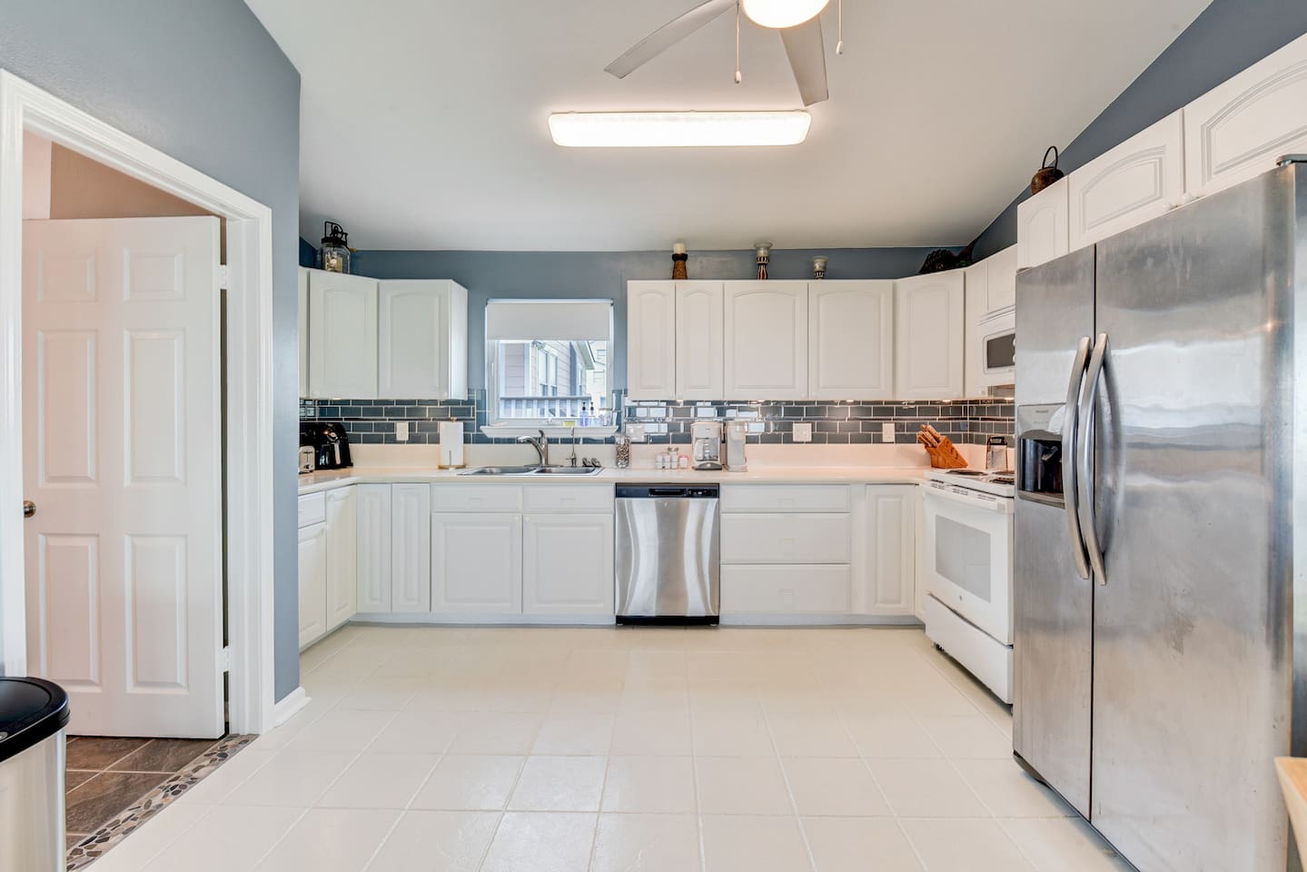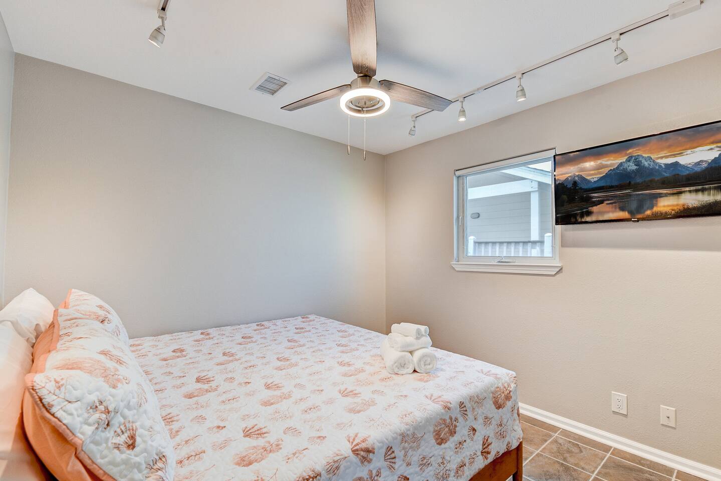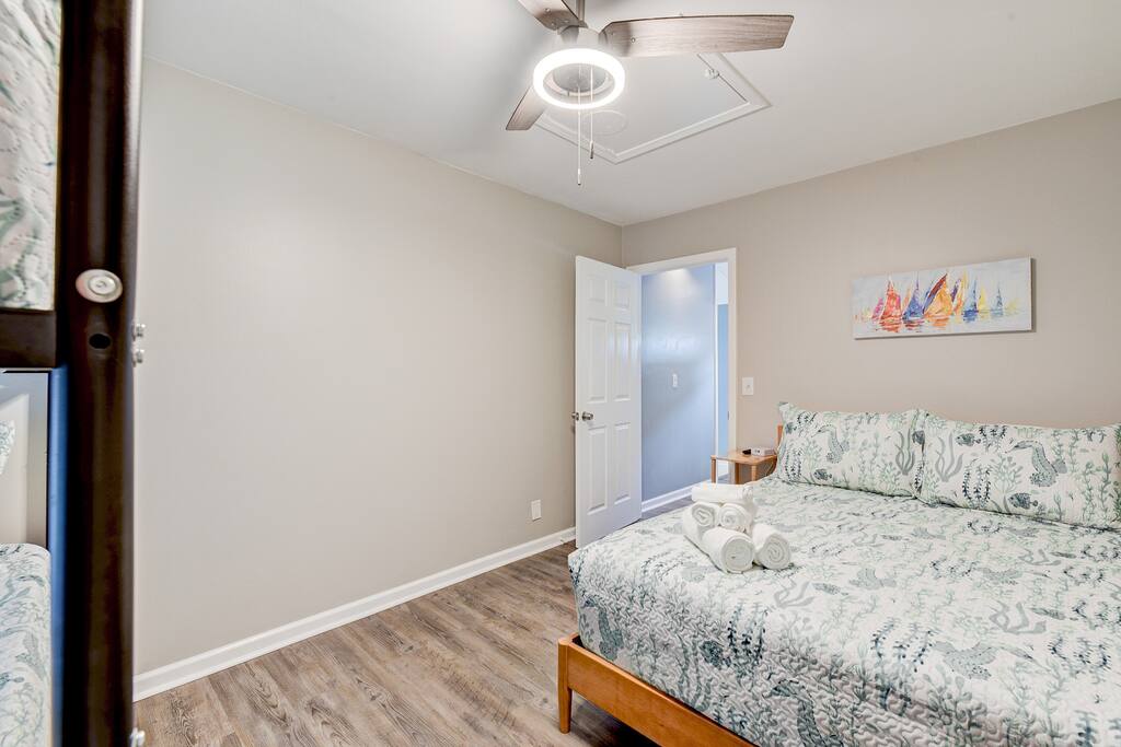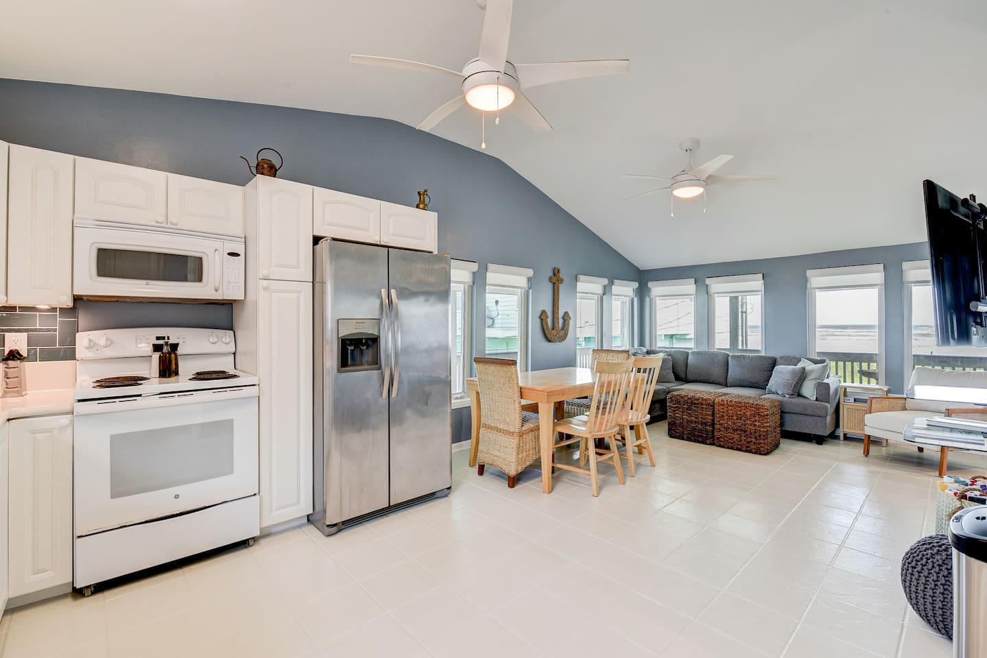 Whether you're planning a family beach vacation or a relaxing trip with friends, Propeller Clubhouse offers the perfect combination of comfort, space, and unbeatable beach access. Why Guests Love Propeller Clubhouse • Beachfront location – walk straight to the sand • Panoramic Gulf views from the deck • Two king bedrooms for extra comfort • Spacious home sleeping up to 9 guests • Outdoor shower to rinse off after beach days • Fast WiFi and Smart TVs in bedrooms • Large patio and outdoor dining space Living Space The bright and comfortable living room is the perfect place to relax after a day in the sun. Enjoy the coastal décor, comfortable seating, and a 55" Roku Smart TV for movie nights or streaming your favorite shows. Large windows bring in natural light and let you enjoy the relaxing coastal atmosphere throughout the home. Kitchen & Dining The spacious kitchen is perfect for preparing meals for the whole group. Features include: • Electric stovetop + oven • Coffee bar with drip coffee maker, Keurig, and electric kettle • Dishwasher, microwave, toaster, and blender • Cookware, dishes, and utensils for group meals The dining table seats six, while the outdoor patio offers additional seating for group meals and sunset dinners. Bedrooms The home features three comfortable bedrooms with six beds, providing plenty of space for families or groups. Bedroom 1 • King bed • Smart TV • Closet storage Bedroom 2 • King bed • Smart TV • Closet storage Bedroom 3 • Queen bed + three twin beds • Perfect for kids or larger groups Outdoor Space One of the highlights of Propeller Clubhouse is the large deck with panoramic beach views. Enjoy: • Morning coffee with a sunrise over the Gulf • Outdoor dining with ocean breezes • Evening drinks while listening to the waves After a day on the beach, rinse off in the outdoor shower before relaxing for the evening. Beach Access You're literally steps from the beach, making it easy to spend the day swimming, building sandcastles, or taking sunset walks along the shoreline.